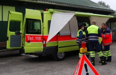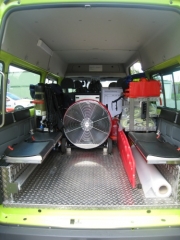 | zusätzliche Ausrüstung: | 6 AS-Geräte Dräger PSS90 mit Reserveflasche, AS-Rettungstasche Typ Givaudan, Fluchthaube, Rettungsseile, 6 Funkgeräte GP340, Messgeräte, Einsatzrucksack Sanität mit Defibrillator, Rettungsbrett, Ausrüstung Führungsunterstützungsgruppe (Funktionswesten, Laptop, Beleuchtung, Einsatzakten, Feuerwehreinsatzpläne, etc.), Faltsignale Sammelplatz und Einsatzleiter, Ersatzwäsche, Getränke | ||