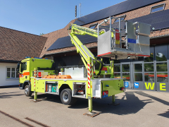 | Autodrehleiter: | 26 m Rettungshöhe / 28 m Arbeitshöhe / Nutzlast Korb 300 kg | ||