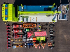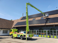 | zusätzliche Ausrüstung: | Lösch- und Rettungsmaterial, Absturzsicherung, Rettungswanne, Tiefenrettungsausrüstung, Wasserwerfer für Korb, Akkulüfter, Generator, 3 Atemschutzgeräte, fest verlegte Wasserleitung zum Korb | ||